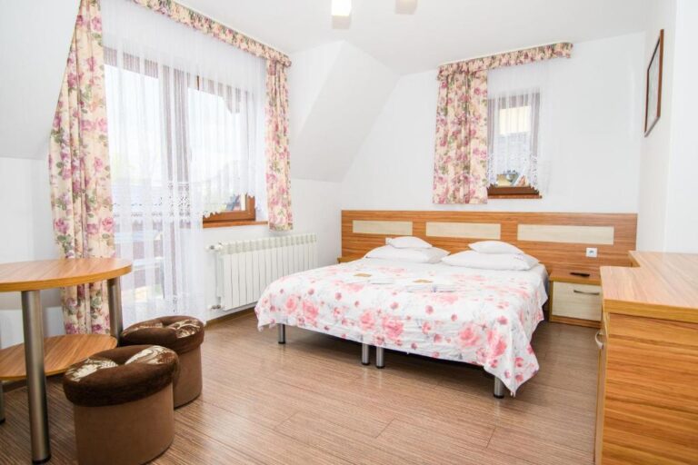 Przytulne pokoje u Futra, to idealna alternatywa noclegu w górach, z wyżywieniem. Klimatyczne wnętrza, zapewnią Tobie i Twoim bliskim komfortowy pobyt w Zakopanem, a pożywne śniadanie doda Ci energii przed górską wyprawą. Zadbaliśmy o kompleksowe wyposażenie: wygodne łóżka, funkcjonalną łazienkę, TV i darmowe WI-FI.