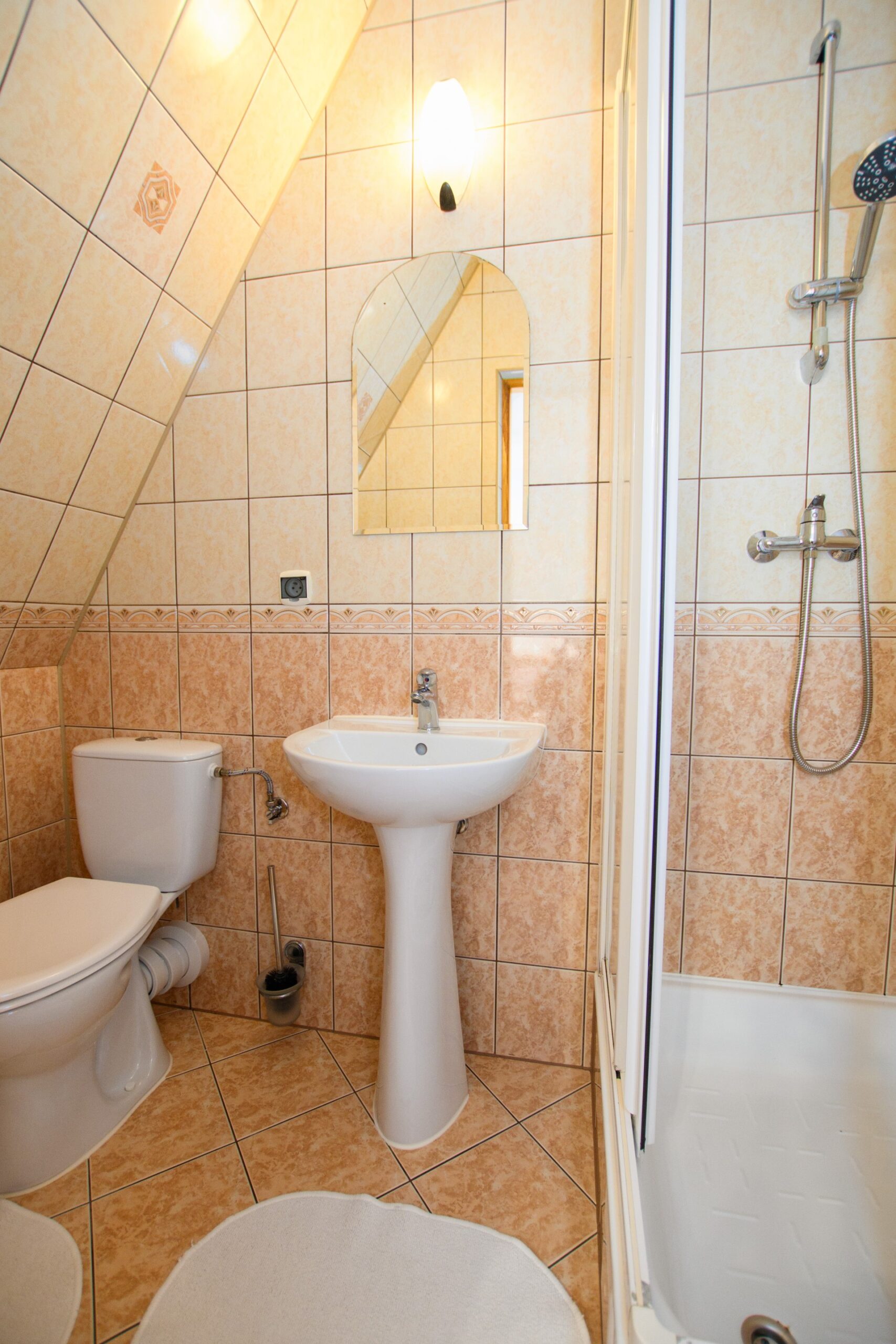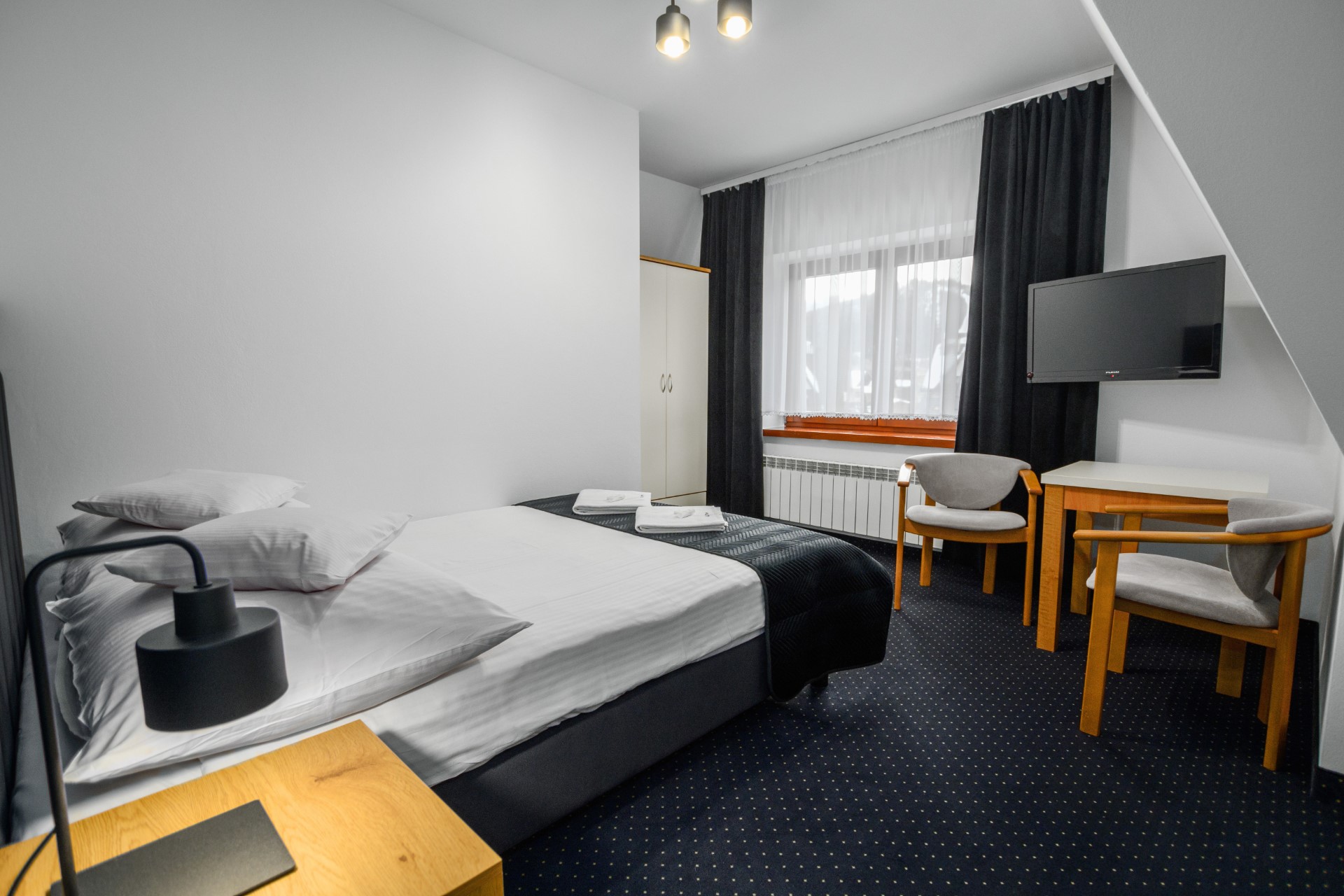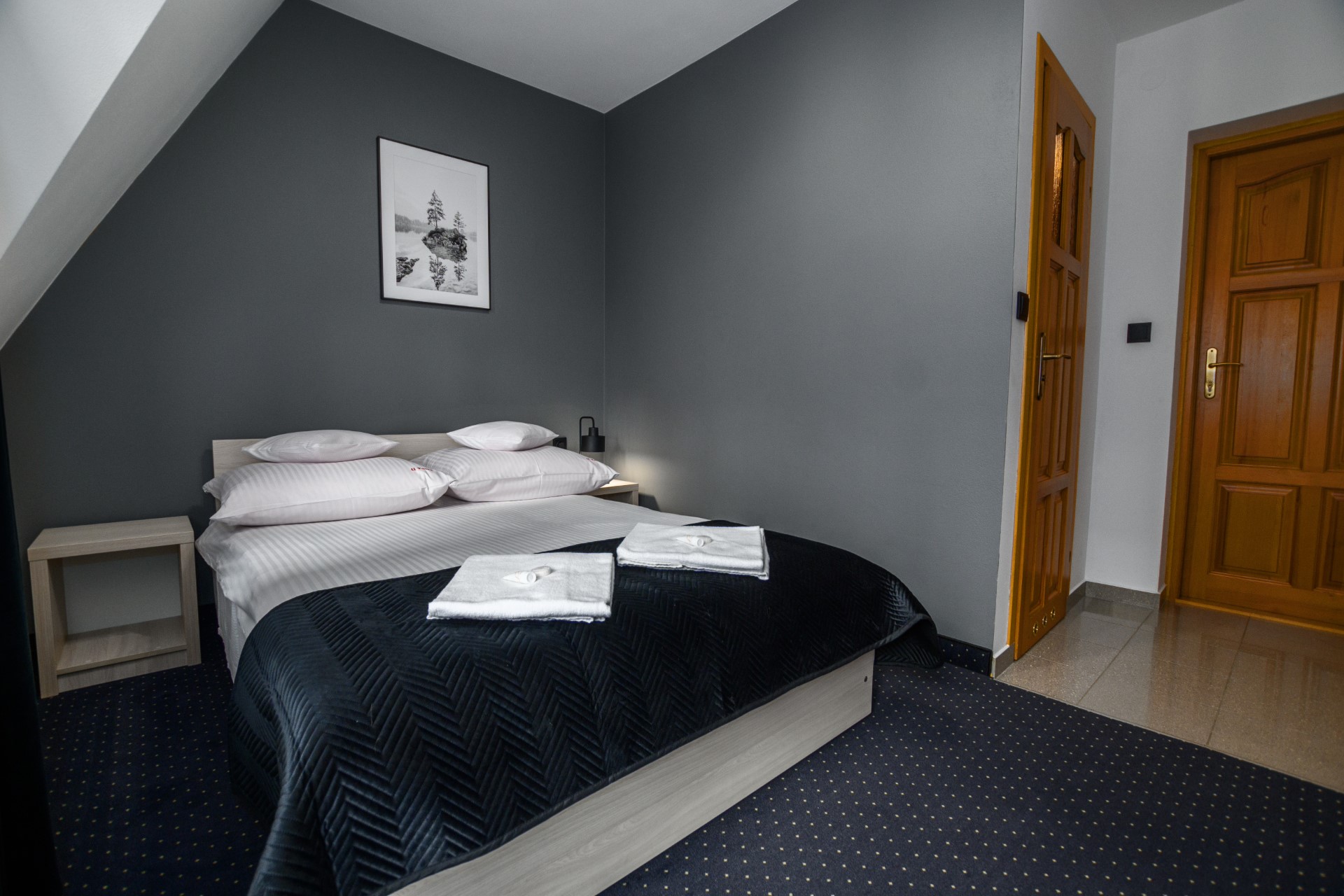 Romantyczny weekend we dwoje? Wybierz przytulny pokój 2 osobowy. Znajdziesz w nim: wygodne łóżko małżeńskie, stół z miękkimi pufami, TV, bezpłatne Wi-Fi, naczynia i sztućce. W łazience: prysznic, suszarka do włosów, ręczniki oraz zestaw kosmetyków.